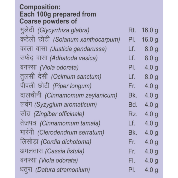 Divya Swasari Kwath (100gm) For Cold & Cough, Respiratory System, Congestion, Cough In The Lungs