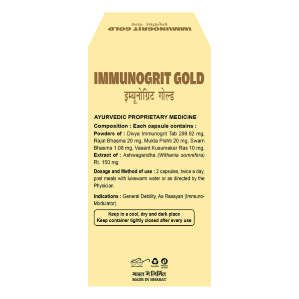 Divya Immunogrit Gold (60 Capsules) For General Debility, Body & Joint Pain, Digestive System, Maintains Sugar Levels
