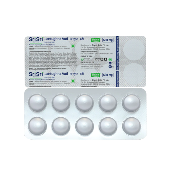 Srisri Tattva Jantughna Vati 500mg (100 Tablets)Â For Immunity, Infections, Stomach Worms