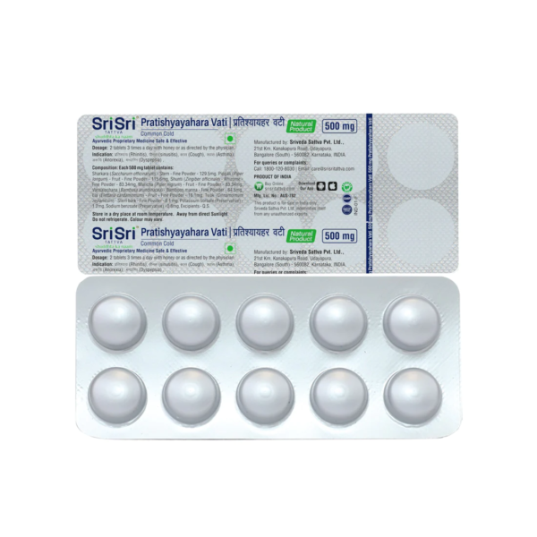 Srisri Tattva Pratishyayahara Vati 500mg (100 Tablets)Â For Improves Appetite, Runny Nose, Cough & Cold