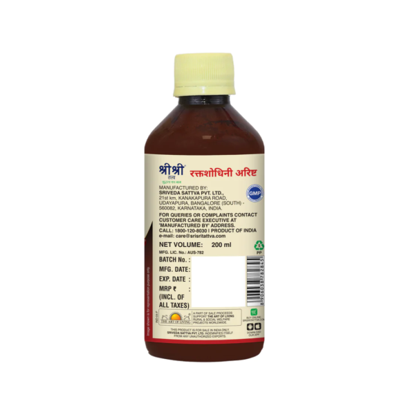 Srisri Tattva Raktashodhini Arishta Syrup (200ml)Â For Skin Diseases, Purifies Blood, Itching, Pimples & Acne