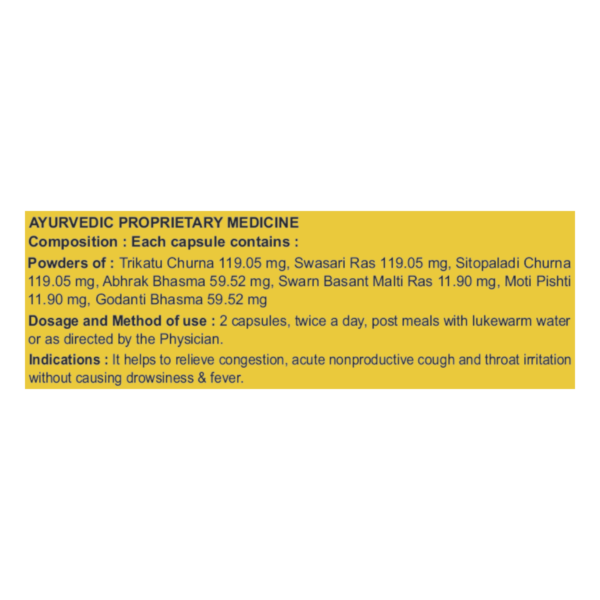 Divya Swasari Gold (20 Capsules) For Sore Throat, Acute Cough