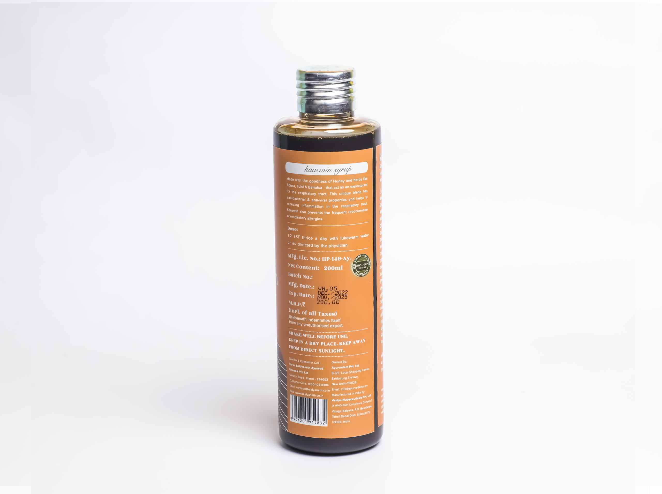 Ayurvedant Kaaswin Cough Syrup (200ml) For Cold & Cough, Runny Nose, Respiratory Allergies