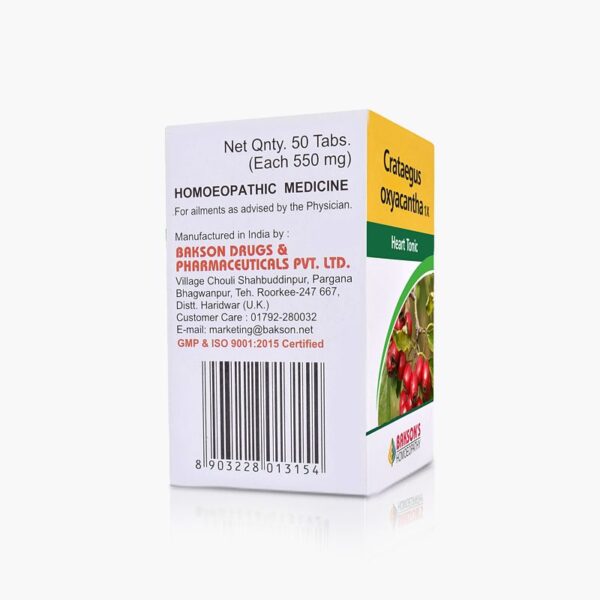 Bakson Homeopathic CRATAEGUS OXYACANTHA 1X (50 Tablets) For hypertension, arteriosclerosis